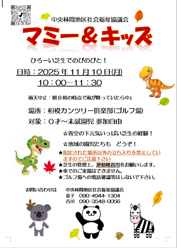 2025年11月10日に今年最後のマミー&キッヅが催されます。皆様のご参加を心待ちにしています。