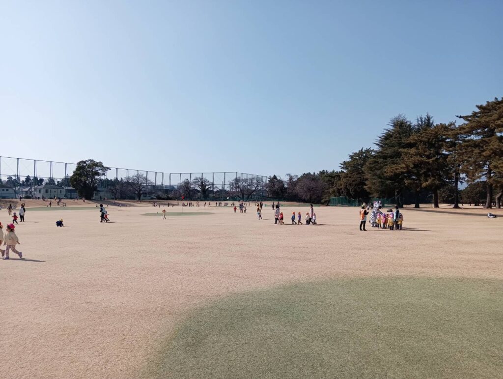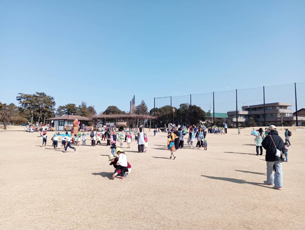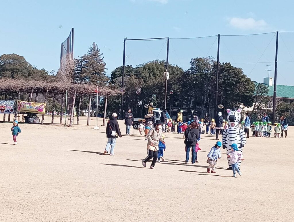 子育て支援の交流事業の一つとして開催され、広々とした芝生の上で、かけっこやシャボン玉などの遊びを楽しむことができ、子どもや保護者同士の交流の場としても最適なイベントです。