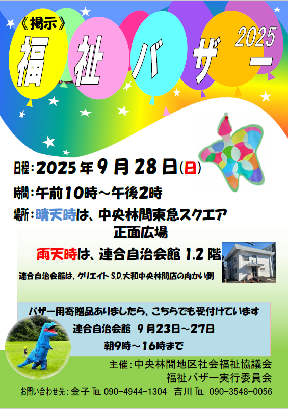 バザー用寄贈品のご提供も合わせて、よろしくお願いいたします。