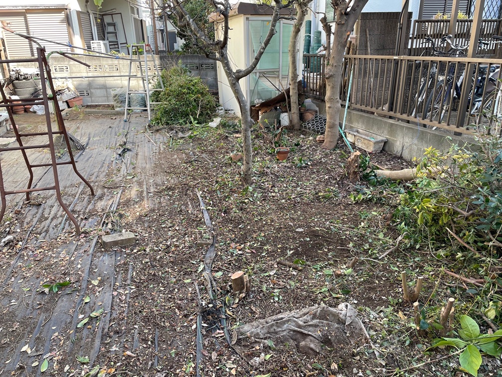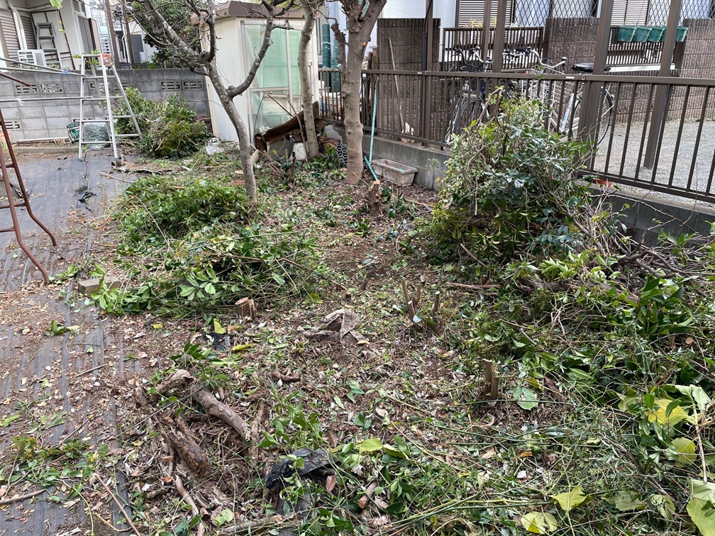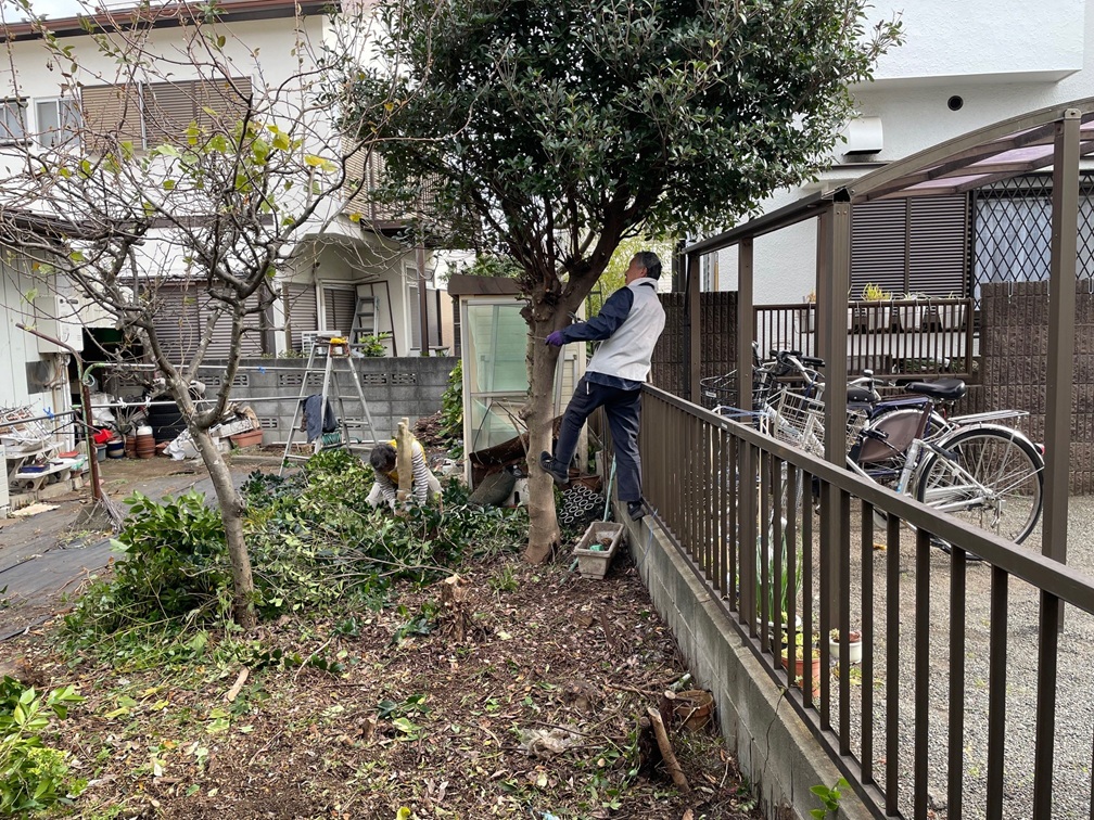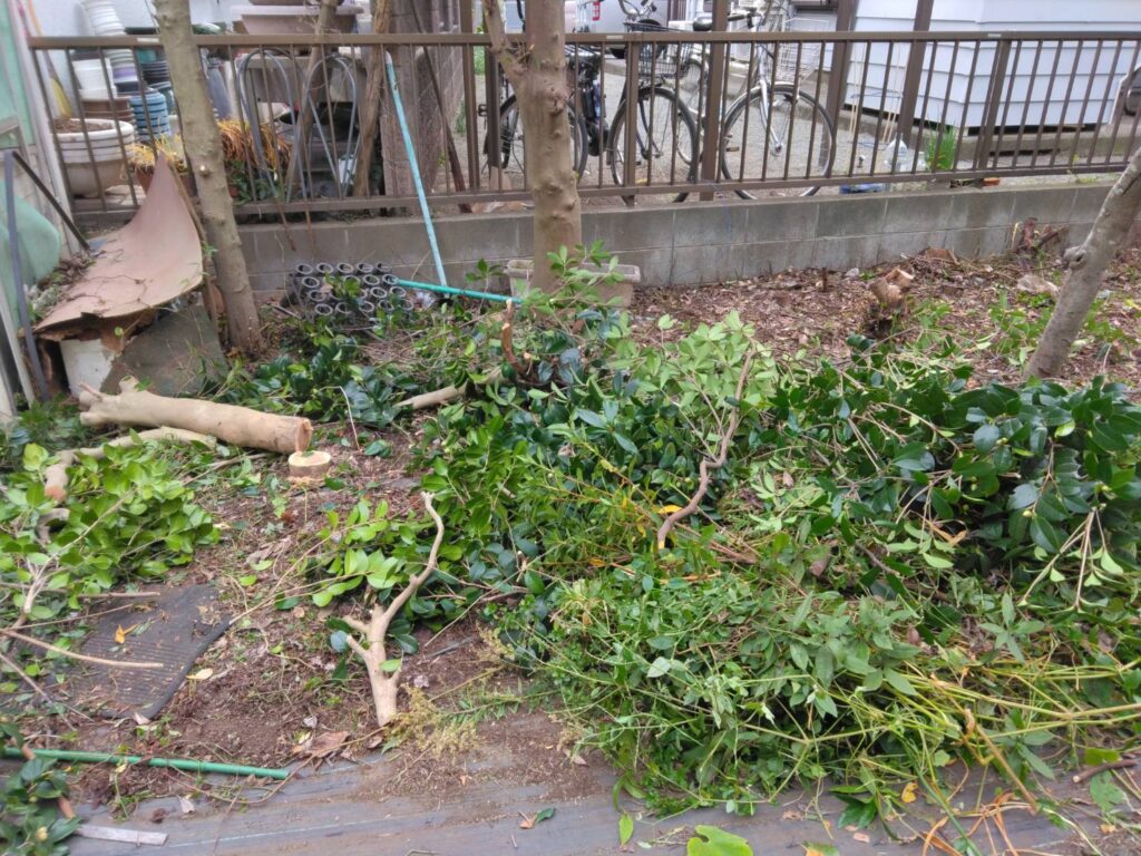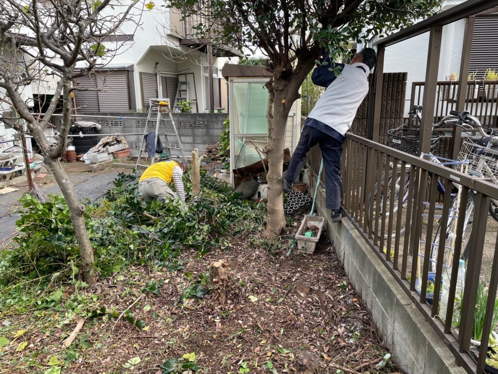 2025年12月13日に、庭木の除去などを行いました。今回は結構たくさんの庭木を伐採する必要があり5人で行いました。