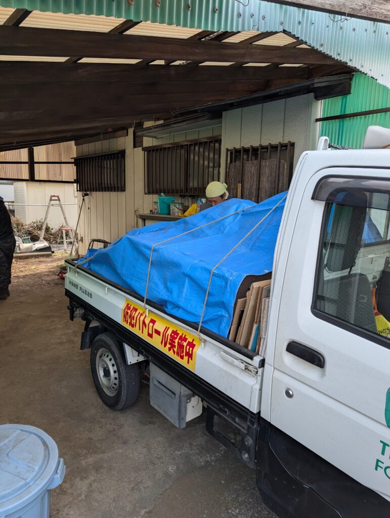 2026年1月26日の作業では、外の捨てるごみの分別を行い、ごみを分別して、燃えるごみは環境センターに持ち込み処理しました。