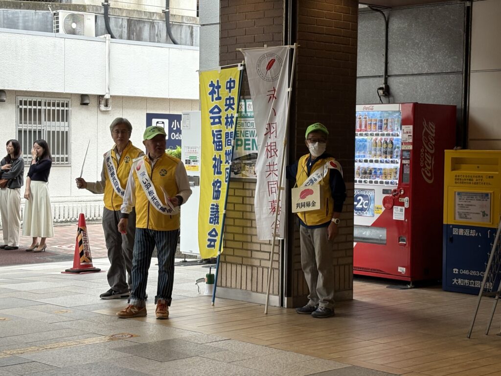 2025年10月12日(日)に、赤い羽根共同募金活動を中央林間駅の小田急側と田園都市線側の2か所の改札口付近で行いました。多くの方による募金大変ありがとうございました。集まった募金は募金支部に提出し、集計していただいたところ16,361円でした。募金は今後の福祉活動に使われますので、これからもよろしくお願いいたします。